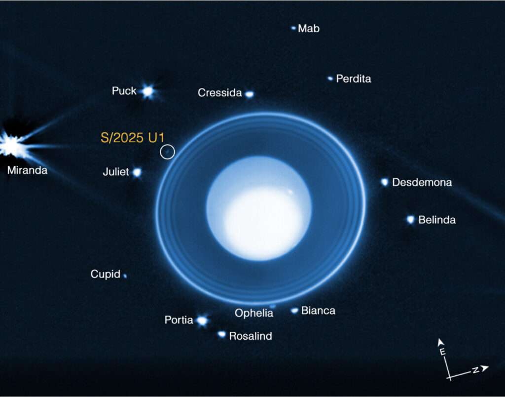 אוראנוס הוא כוכב הלכת השביעי מהשמש, ושייך לכוכבי הלכת החיצוניים, כלומר ענקי הגז שנמצאים רחוק מאזור כוכבי הלכת הסלעיים כמו כדור הארץ. במבט מערכתי, הוא מעניין לא רק ככוכב לכת אלא כמערכת שלמה: טבעות דקות וריבוי ירחים קטנים שמקיפים אותו ומעידים על סביבה דינמית ומעניינת. עד לאחרונה היו מוכרים סביב אוראנוס 28 ירחים. חמישה מהם […]