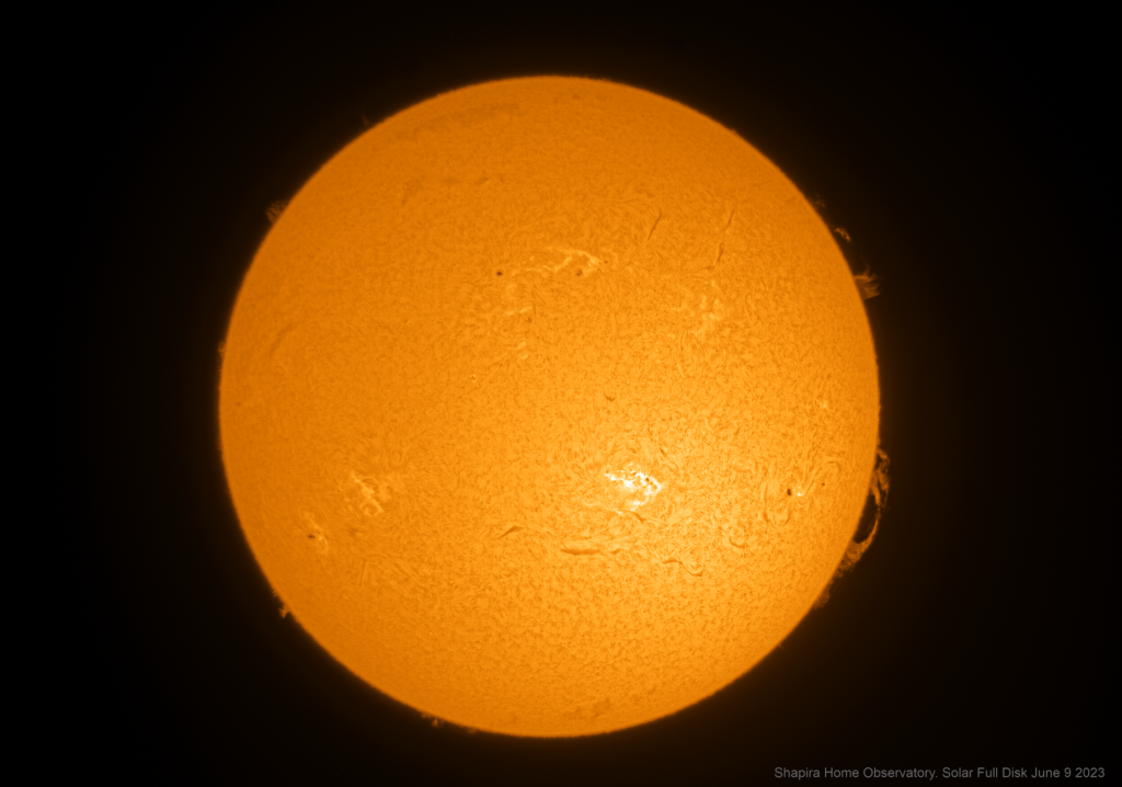 השמש – דיסקה מלאה חם מהתנור!היום ערכנו ניסוי ראשון עם טלסקופ שמש חדש שהצטרף למצפה.הטלסקופ (העליון בתמונה) נועד לצילום כל דיסקת השמש בעוד הגדול יותר מיועד לתקריבים ברזולוציה גבוהה.הוא מצלם באורך גל של מימן מיונן (656.3 ננומטר) ומראה את שכבת האטמוספרה התחתונה של השמש – הכרומוספרה.גם דרך האובך המעיק התקבלה תמונה לא רעה בכלל. עדיין […]