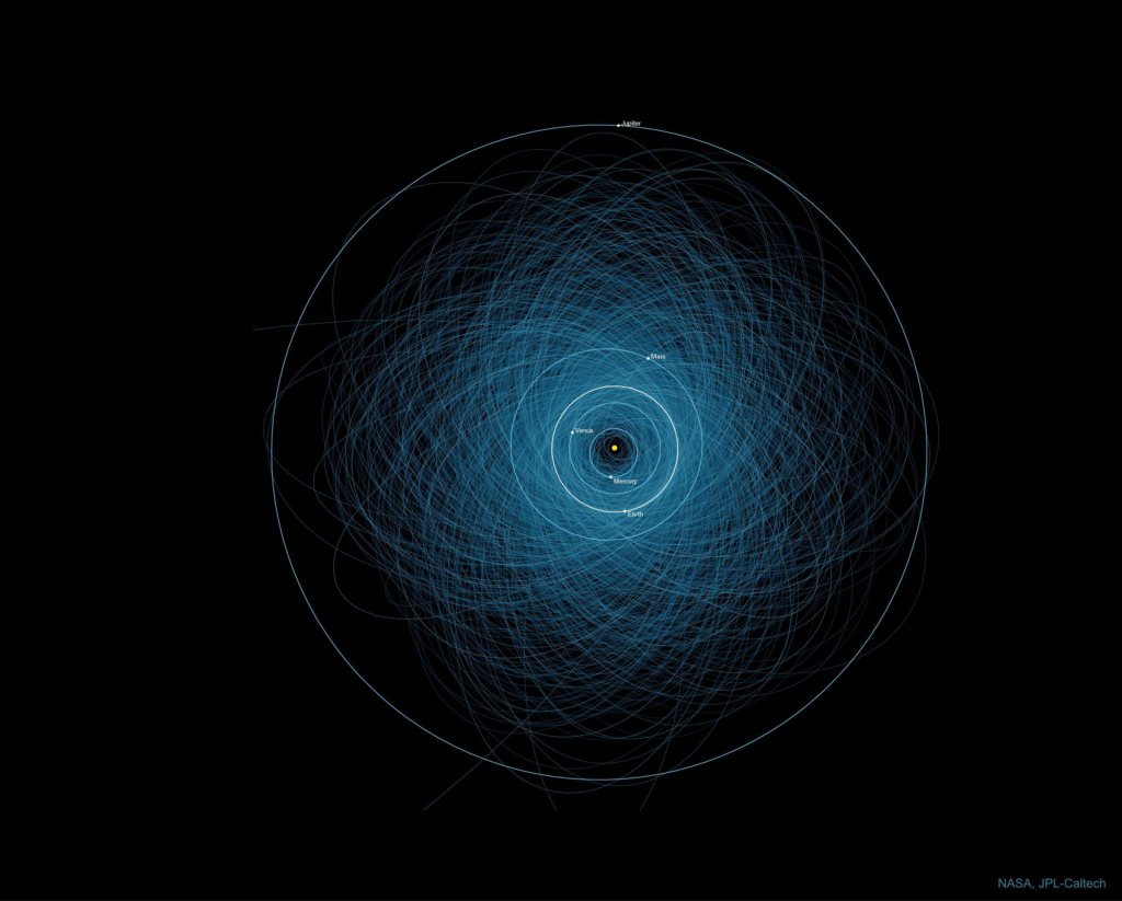 מפת מסלולי אסטרואידים אסטרואידים, האם הם מסוכנים לכדור הארץ?חלקם הגדול קטנים מאוד ופוגעים בכדור הארץ מדי יום אבל הם לא עוברים את מחסום האטמוספרה ומספקים לנו מראות יפים בשמיים. בתמונה רואים מסלולים של יותר מ 1000 אסטרואידים גדולים מ 140 מטרים. בכאלה גדלים הם יכולים בהחלט להגיע לקרקע ולגרום אסונות. לשמחתנו אף אחד מהם לא אמור […]